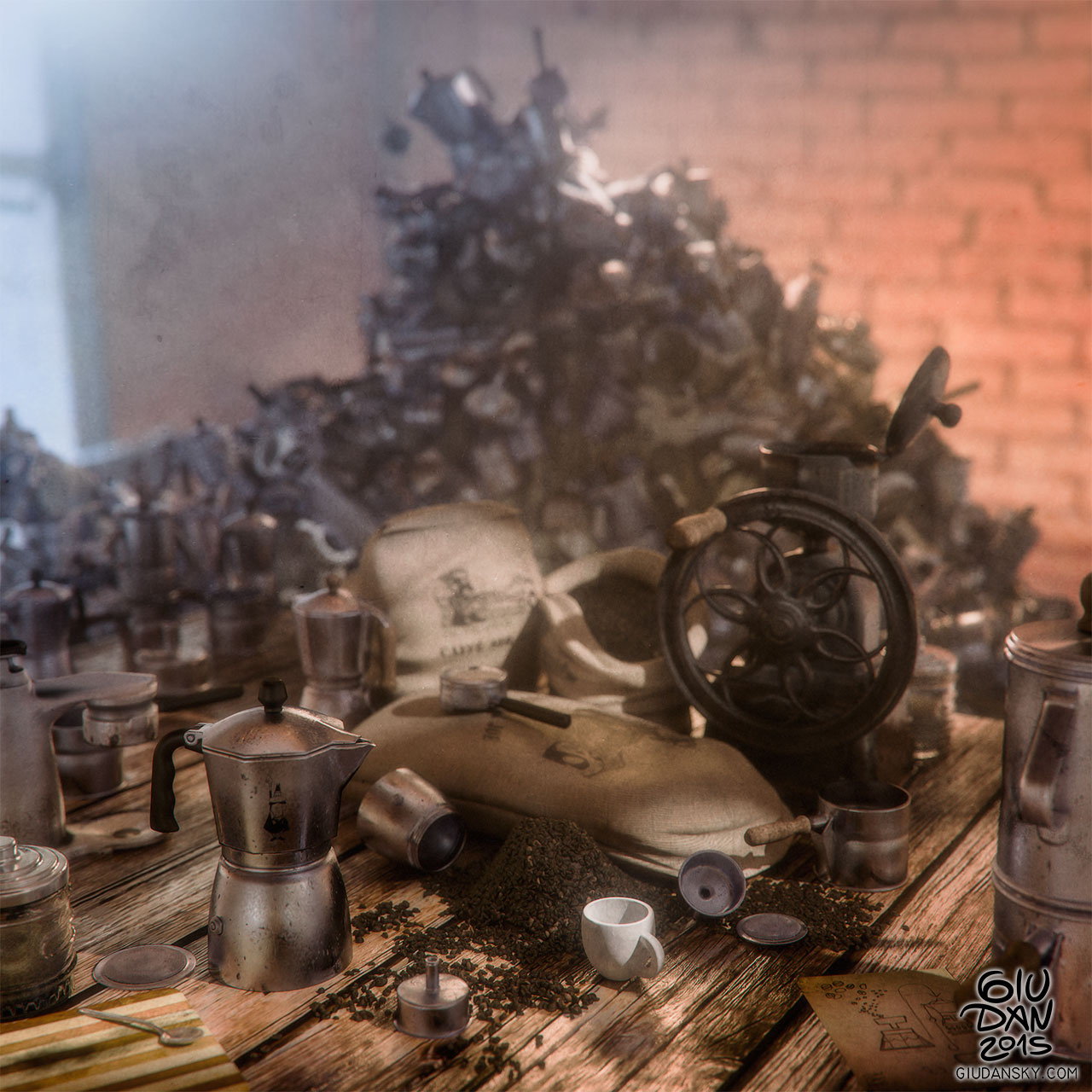 A digital stillife about the hardwork of coffee making. Cgi modeling and a lot of work in