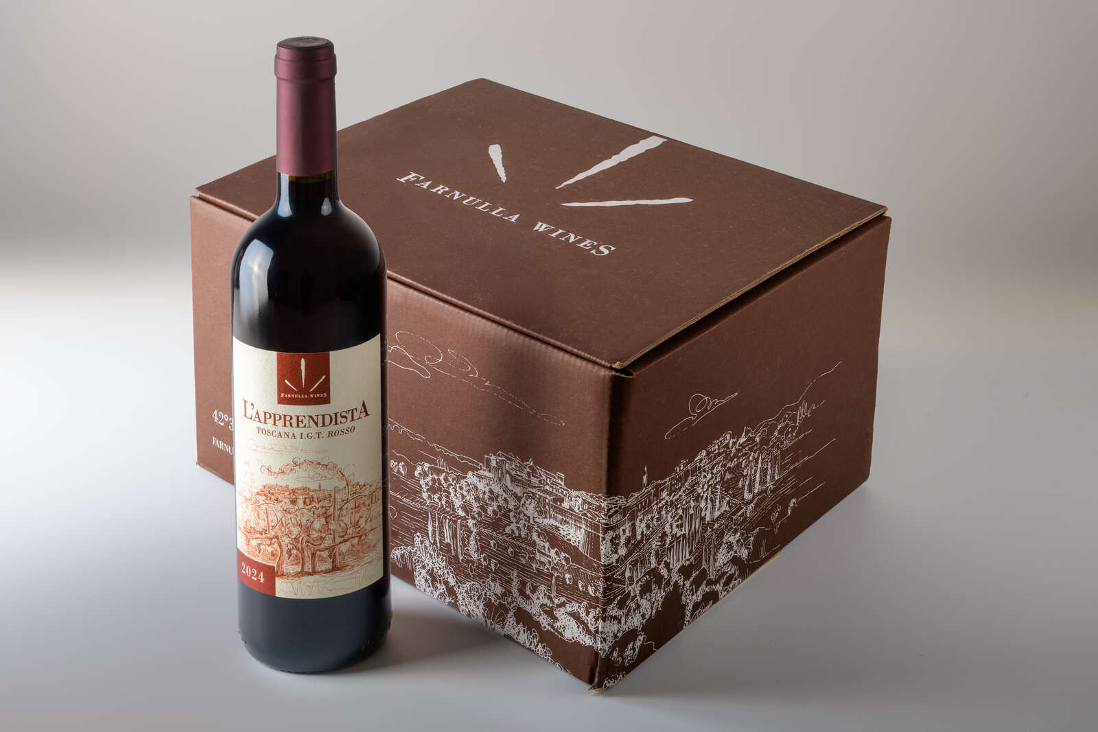 The strokes of the footprint also form a kind of crown, with rays converging on the brand’s lettering. These rays symbolize the spark of an idea, the light of science, and the star of a technological ambition aimed toward a sustainable future. The symbol also evokes an arrow pointing toward the earth, underscoring the importance of soil, terroir, and our planet—beginning with the hills of Magliano in Tuscany, where Farnulla Wines are born.