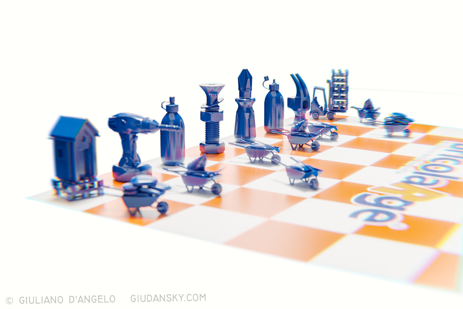 But I had recently seen the wonderful netflix serie and all we do is talk about the great fashion that the game of chess is recovering, thanks to the cinema (and the lockdown). In these visuals, made for a DIY brand campaign, we redesigned the pieces to create a new metaphorical and expressive link between DIY and strategy play.