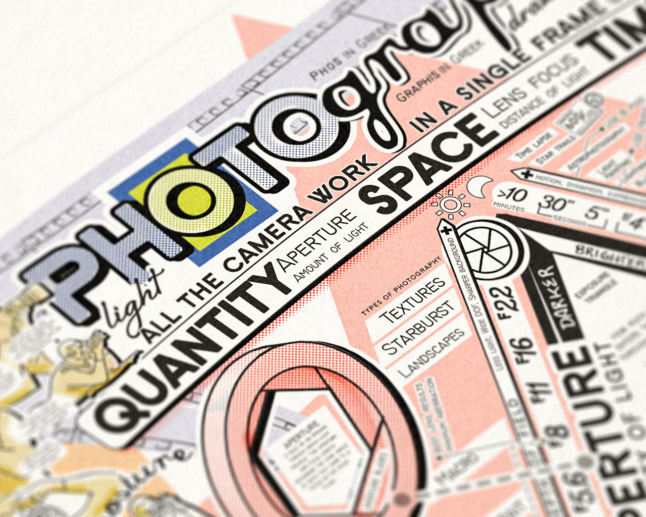 Everything in a single giant poster infographic. It's the fourth artwork piece for my "Learn with a poster" serie; visual elements are inspired by '70s paper blueprints and camera manuals, with typographical screens and retro typography.