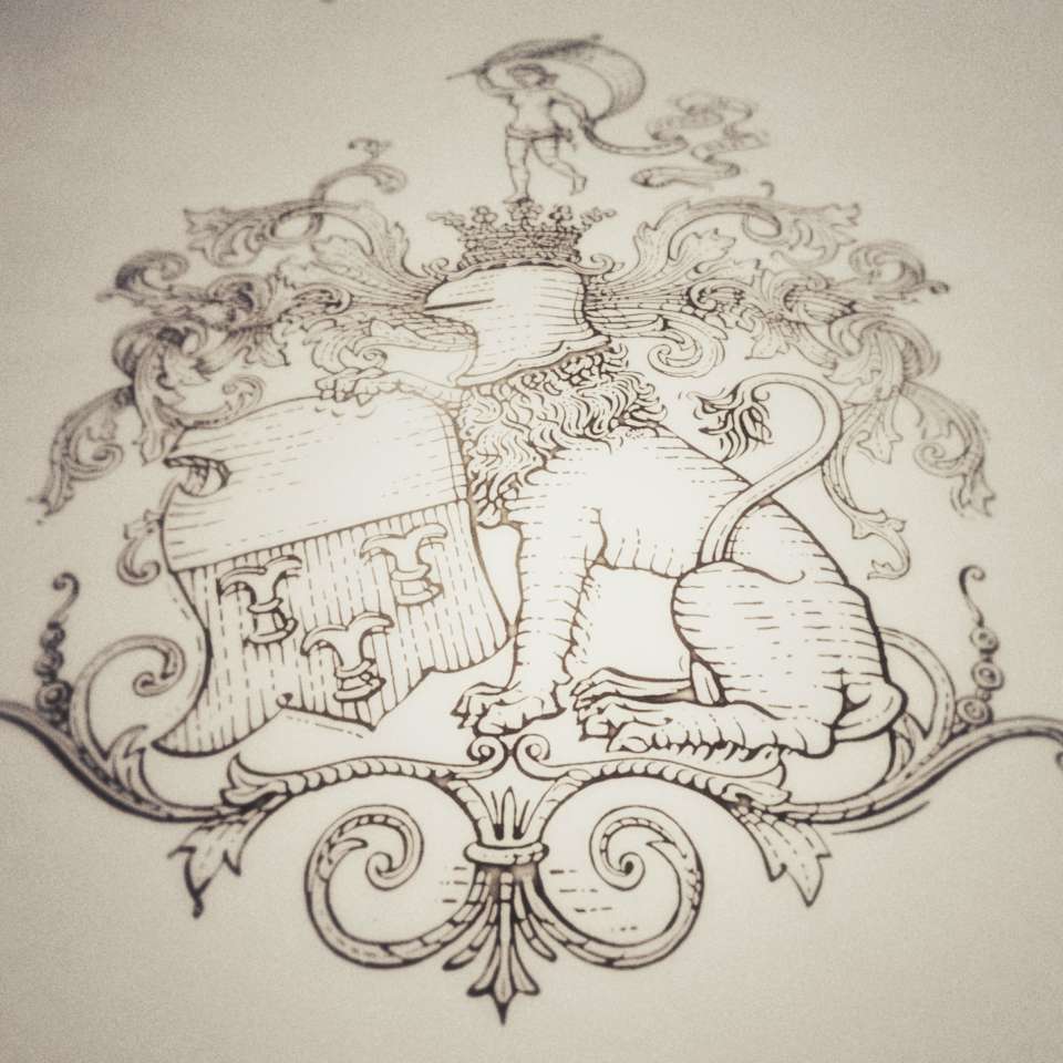 Illustrazione incisione dello stemma araldico Frescobaldi, realizzato con e per Doni&Associati di Firenze, per la realizzazione della serie di etichette della nuova cantina Frescobaldi Tenuta di Perano.