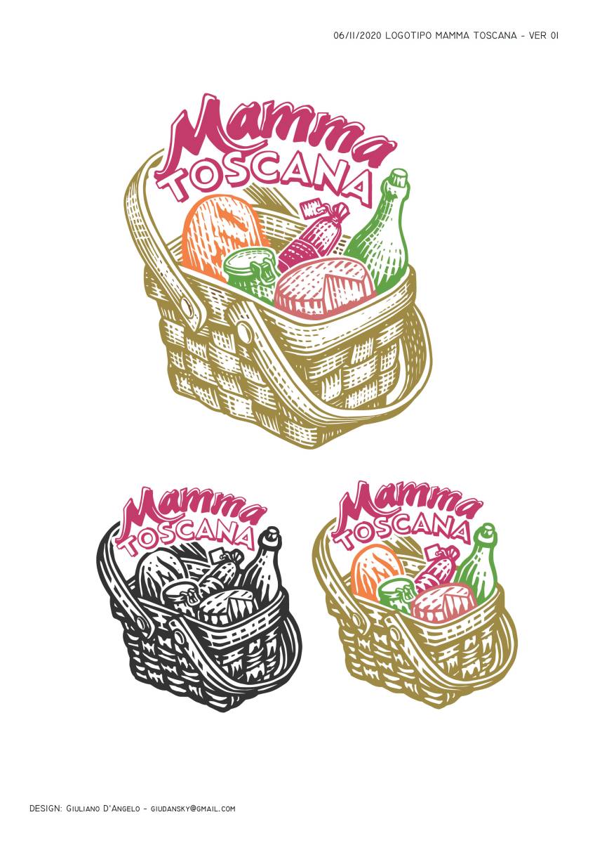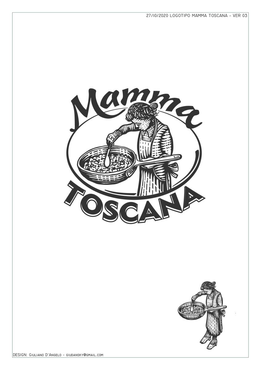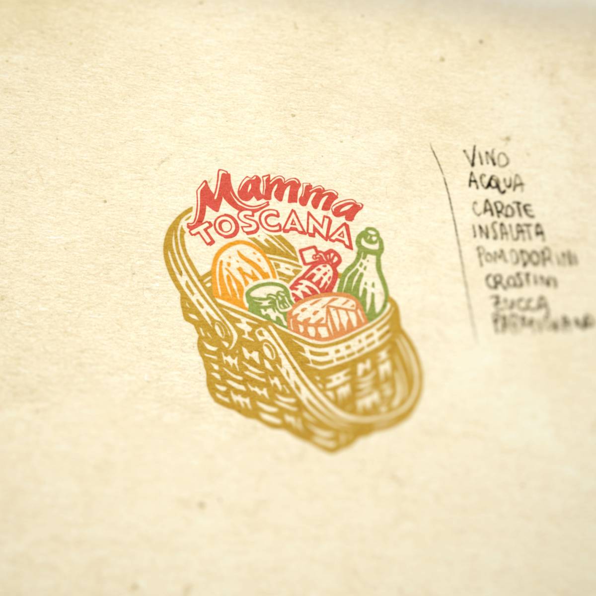 Study concept logo for the food brand "Mamma Toscana", made in 2019, commissioned work. Line art illustration in engraving style. The goal is to recall the brands of the past and the informal contexts of genuine meals remedied in the street shops.